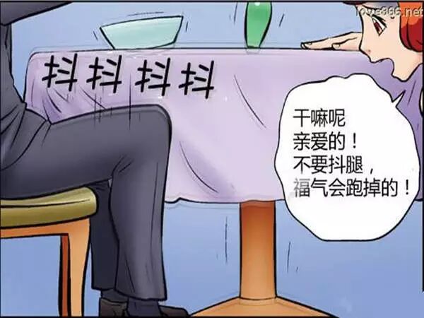 6、抖脚晃腿 奇葩指数:★★★ 菇凉自述:是不是随州男人都喜欢抖脚恍腿的,过年回家相了4个,其中有3个都是抖脚恍腿控!!!不多说了,尼玛都把我慌晕了! 小编点评:上学时同桌抖脚都想分分钟翻脸,别说相亲桌上。与其说是一种习惯,不如说通过细节看素质。所谓:男抖穷,女抖贱。女生一坐下看到男方抖脚,绝对的分数大打折扣!