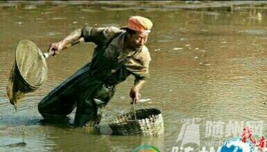 吃过早饭后,大人都出工了,见到堰里的水已经浑浊,水里开始翻花,那些不着急下田的大叔就下水摸鱼了,只见他像鸭子一样撅着屁股朝前摸,不到半个钟头他的布鞋里已经塞满了鲫鱼。他起身上岸,回家叫孩子们带“家伙”过来。邻里之间见了都说“堰里的水干了,快去捉鱼哦”,那些还在吃锅巴粥的婶子们赶紧放下碗筷,叫上自己的二毛、三毛,四妮子,赶紧地把能拿的拿上,什么淘菜篓子、筲箕折、鸡罩都拿出来了,更离谱的是有的把筛子都拿出来了,大家都火速赶往“前线”,娃子们都打着赤脚。