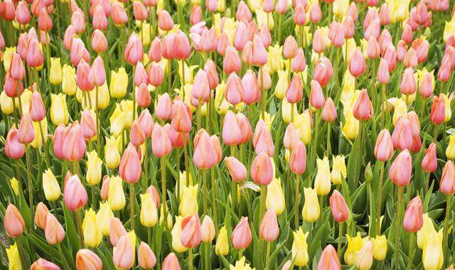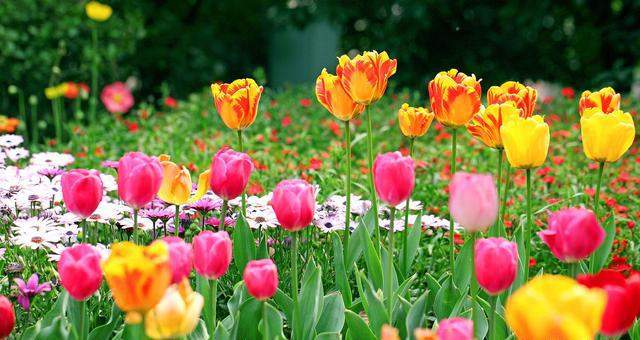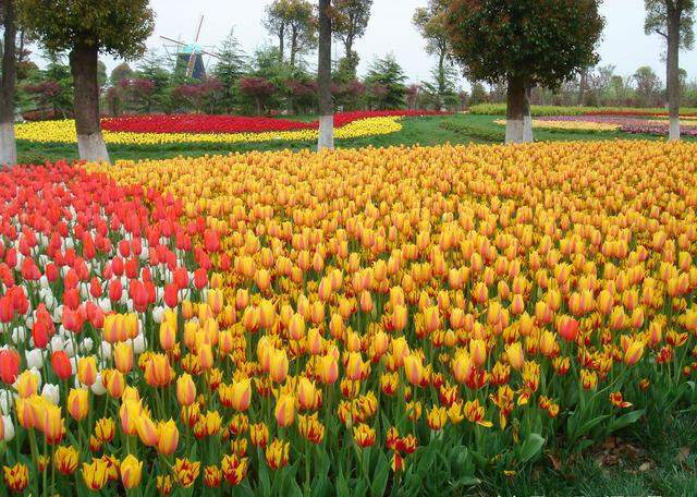 每年郁金香花期都是翠湖公园内最美丽的一道风景,鲜红色、嫩黄色、紫白色的花朵,在灿烂的阳光下显得分外娇嫩。阳光总是暖洋洋的,天空也显得格外的蓝。长期温润的空气,使得这里成为郁金香的最佳居所。大片大片的花田望不到尽头:鲜红色、嫩黄色、紫白色的花朵,如云似雾一样漂浮着。 上海鲜花港