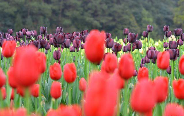 信步走入石象湖景区,山坡上盛开着漫山的郁金香,那是最美的年华和季节。放眼望去,在浅丘下的开阔地上,成片的花挤挤挨挨,排山倒海,开始刺激 我们的视觉神经。红的热情,粉的娇媚,黄的明丽,紫的典雅,黑的高贵……五彩缤纷,铸就了这这的春天。淡色的石板路承载着游人春天的梦想! 西安植物园