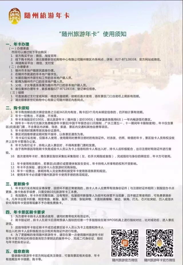 景区绑定点:炎帝神农故里售票厅、西游记公园售票厅、大洪山风景区售票厅 好想来一次说走就走的旅行 认真瞅瞅我大随国的大好河山 可是看看自已瘦弱的小钱包 恨不得让他赶快肿起来 好去畅游山川美景 身体和心灵总得有一个在路上不是