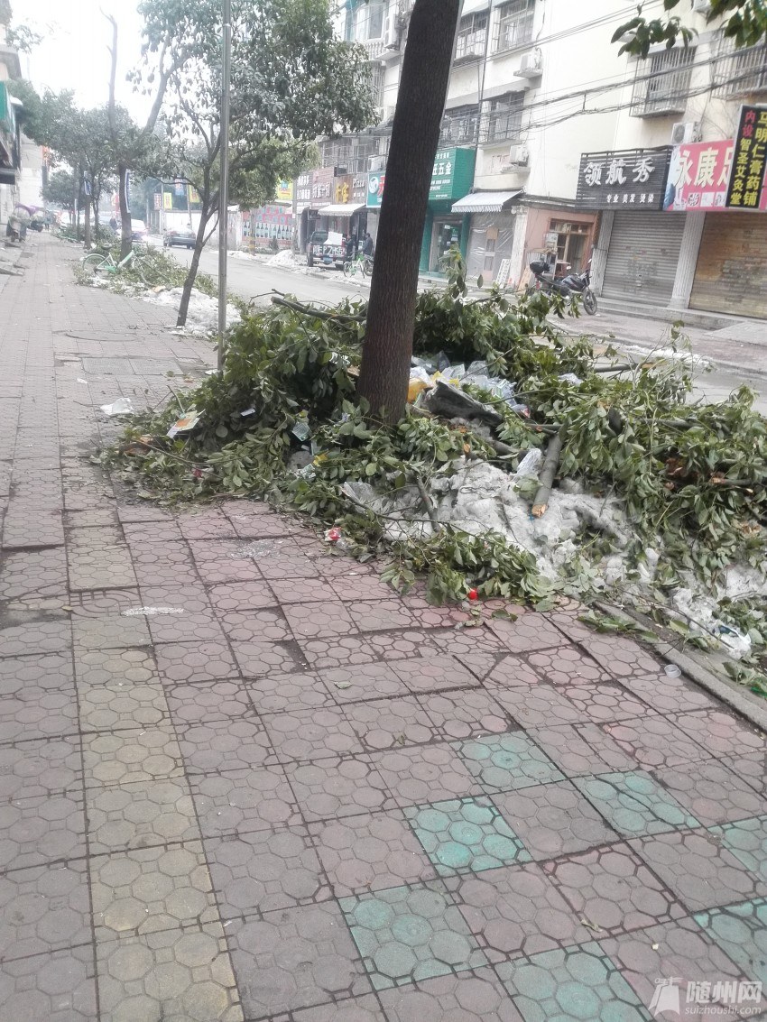随州的大雪过后,压断了很多树枝,现在已经过了十来天了,长盛苑小区附近的路上还堆积了很多树枝,影响交通和市容市貌,也不知该什么部门来清理
